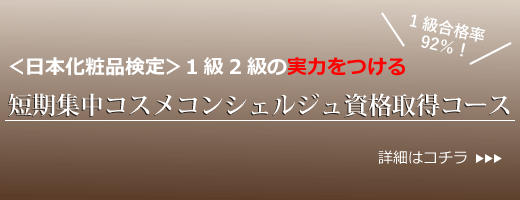 「日本化粧品検定1級合格」&「コスメコンシェルジュ資格取得」のための短期集中コースです。確実な1級合格&資格取得を目指す方にオススメのコースです。